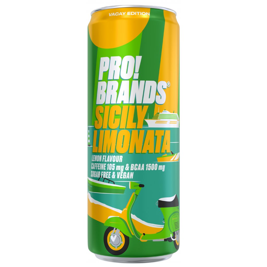 Probrands sycený BCAA nápoj s příchutí citronu. Obsahuje kofein (32mg/100ml) a BCAA (1500mg/330ml). Pasterizovaný. Se sladidly. Složení: voda, oxid uhličitý, kyseliny (kyselina citronová, kyselina jablečná), L-leucin, L-isoleucin, L-valin, regulátor kyselosti (citráty sodné), přírodní aroma, kofein (0,032 %), sladidla (sukralóza, acesulfam K ), vitamíny (kyselina pantotenová, vitamín B6, biotin, vitamín B12).
